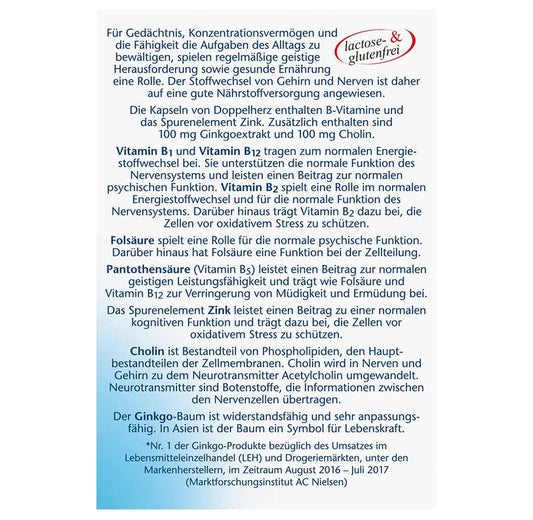 Doppelherz aktiv Ginkgo + B-Vitamine + Cholin Kapseln (40 Stk.)
